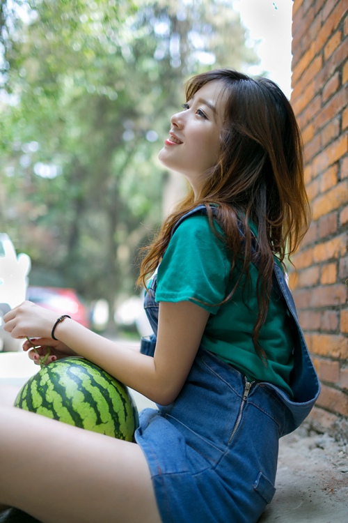 Photos of a college student posed with watermelons go popular online.(Photo source: scol.cn)