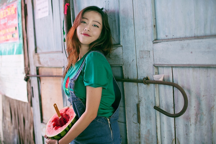 Photos of a college student posed with watermelons go popular online.(Photo source: scol.cn)