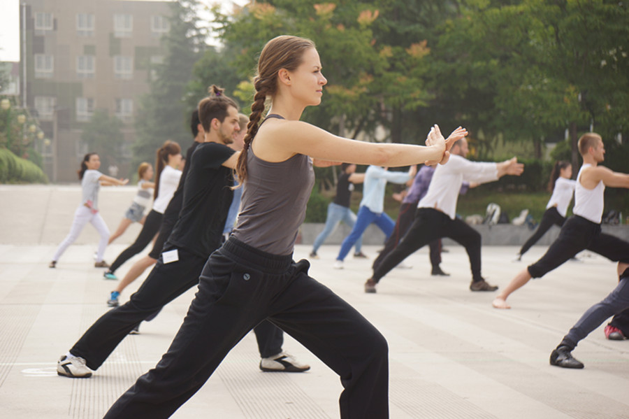 Although the CEEC students spent just one hour learning Tai Chi, their postures look very good.[Photo by Xu Jing/Chinaculture.org]