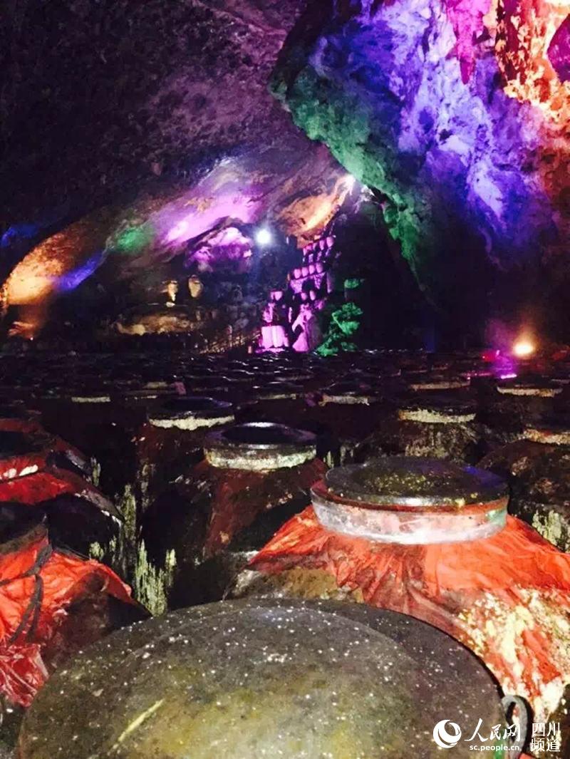 Located in Xingwen County, Yibin of southwest China’s Sichuan province, Shihai Cave stores about 1,200 tons of liquor. Inside a karst cave which has constant temperature and humidity, the flavor of the liquor will be better preserved. (Photo/people.cn) |