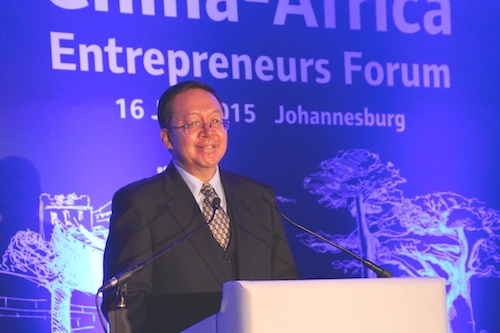 Mr. Tian Xuejun, Ambassador of China to South Africa, addresses China-Africa Entrepreneurs Forum in Johannesburg, South Africa on July 16th, 2015. (Picture: People’s Daily Online / Zhang Jiexian)