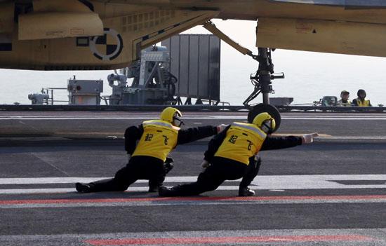 A group of photos show the training scene of the soldiers serving at Liaoning aircraft carrier. Their hand signals when directing the aircrafts make the legend 'aircraft carrier style' popular on the internet with many people posting imitations of it. (Photo/China Youth Daily)