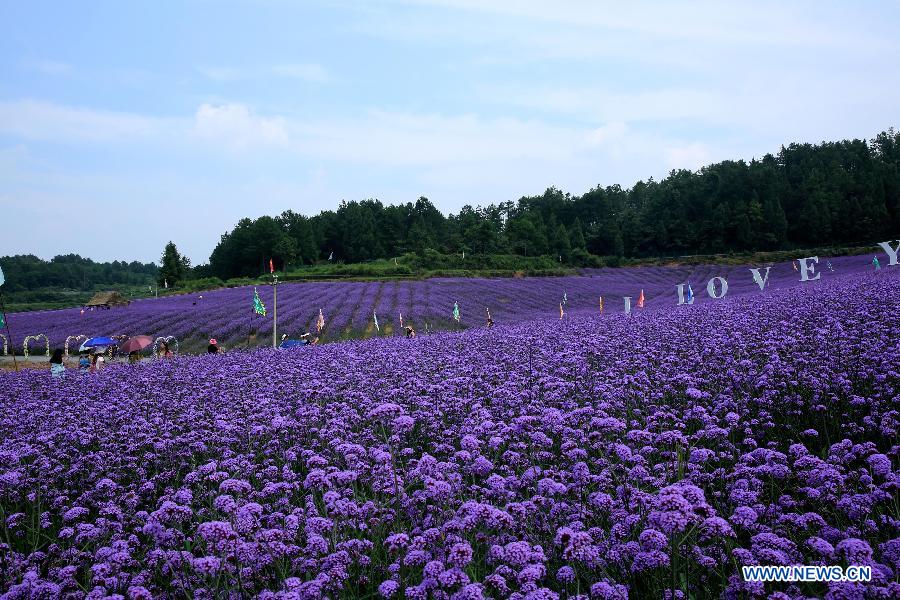 People visit a lavender garden in Fenghuang County, Xiangxi Tujia-Miao Autonomous Prefecture, central China's Hunan Province, July 20, 2015. (Xinhua/Peng Biao)