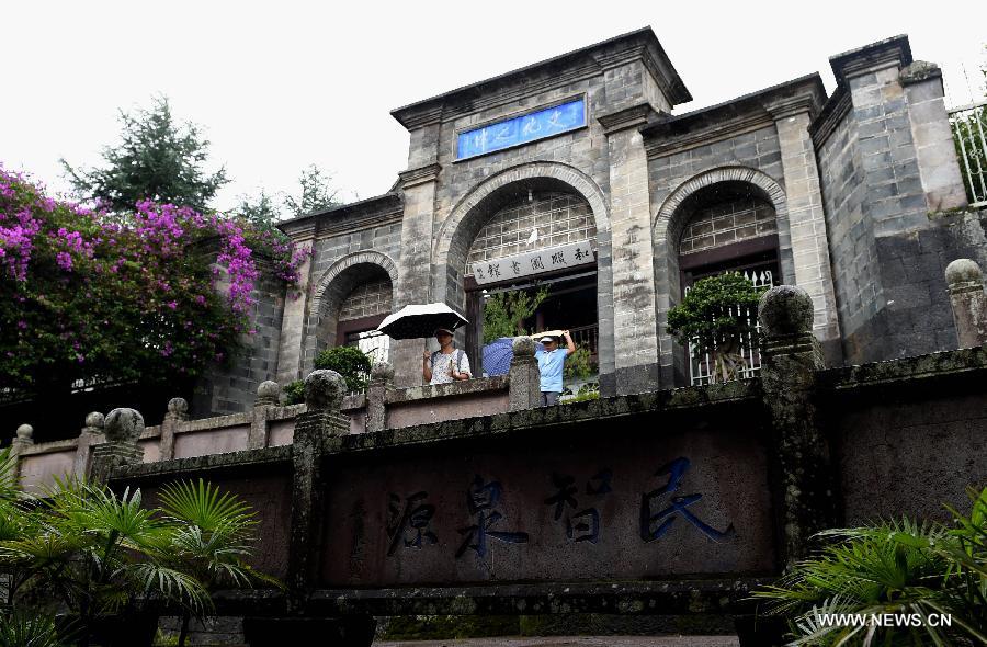 People visit Heshun Library in Heshun Town of Tengchong County, southwest China's Yunnan Province, July 20, 2015. Founded in 1928 with donations by overseas Chinese returning to their hometown Heshun, Heshun Library is China's oldest village library famous for its impressive collection of books and architectural complex with Chinese and Western elements combined. (Xinhua/Lin Yiguang) |
