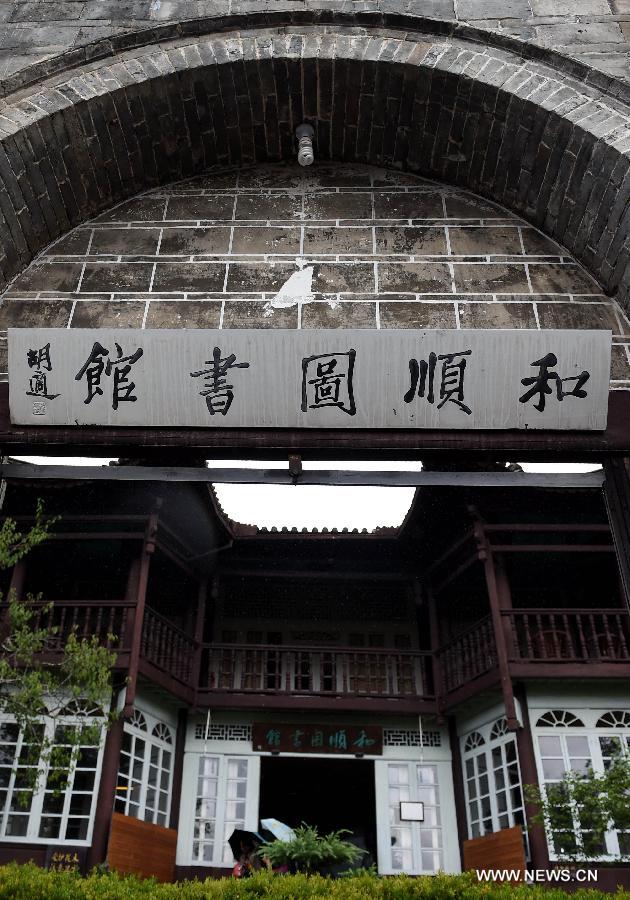 Photo taken on July 20, 2015 shows a building of Heshun Library in Heshun Town of Tengchong County, southwest China's Yunnan Province. Founded in 1928 with donations by overseas Chinese returning to their hometown Heshun, Heshun Library is China's oldest village library famous for its impressive collection of books and architectural complex with Chinese and Western elements combined. (Xinhua/Lin Yiguang) |