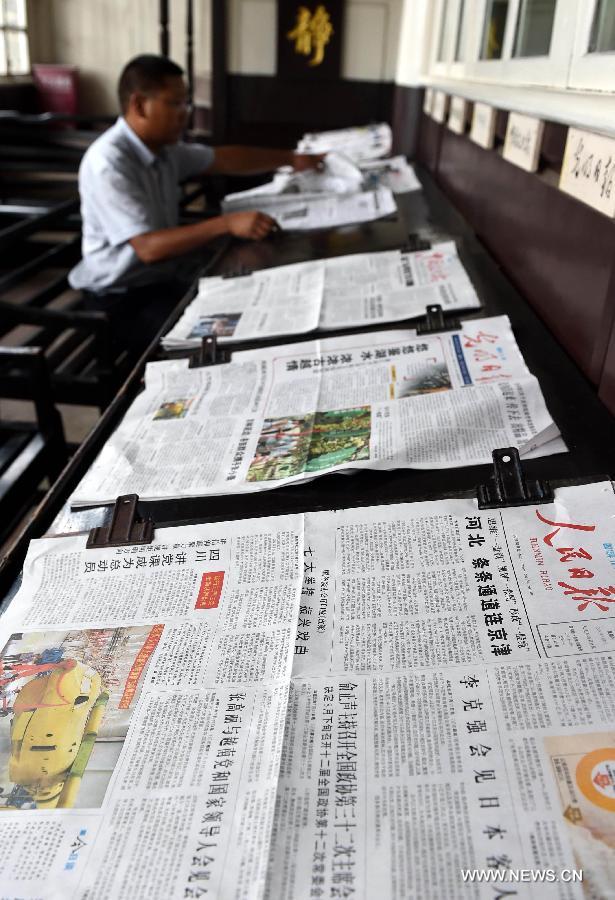 A visitor reads newspaper in Heshun Library in Heshun Town of Tengchong County, southwest China's Yunnan Province, July 20, 2015. Founded in 1928 with donations by overseas Chinese returning to their hometown Heshun, Heshun Library is China's oldest village library famous for its impressive collection of books and architectural complex with Chinese and Western elements combined. (Xinhua/Lin Yiguang) |
