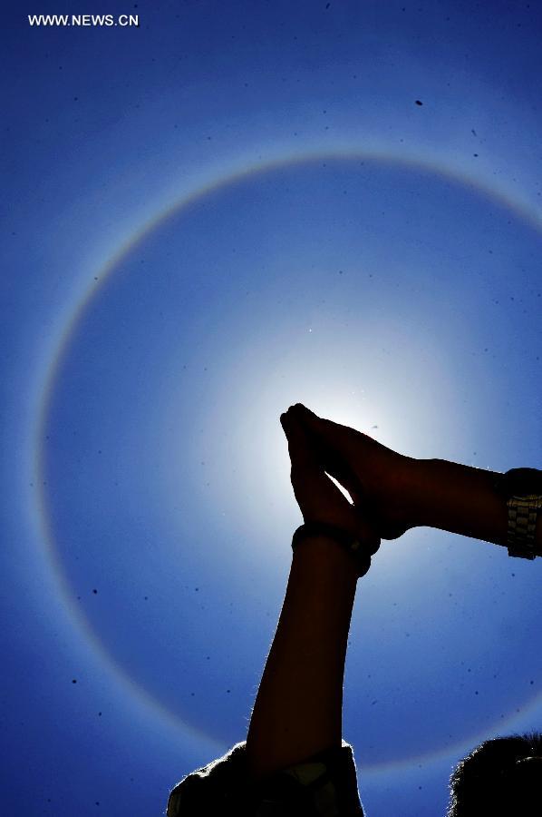 Photo taken on July 21, 2015 shows a view of solar halo over Lhasa, capital of southwest China's Tibet Autonomous Region. (Xinhua/Zhang Rufeng)