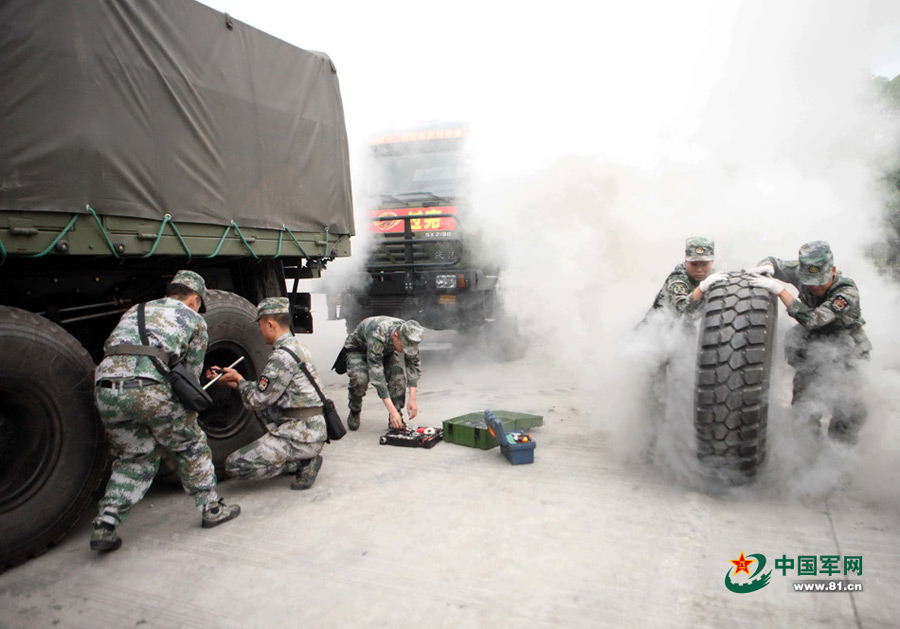 An army driver training battalion of the 13th Group Army begins the long-distance heavy-load transport training on July 16, 2015. The training will last six days with total travel distance of 1,590 km. (Photo/www.81.cn)