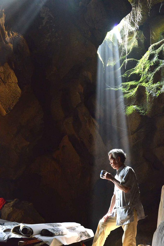 Song Chuanzhong, 67, spends 30 years living and painting in a cave in Guizhou. (Photo source: chinadaily.com)