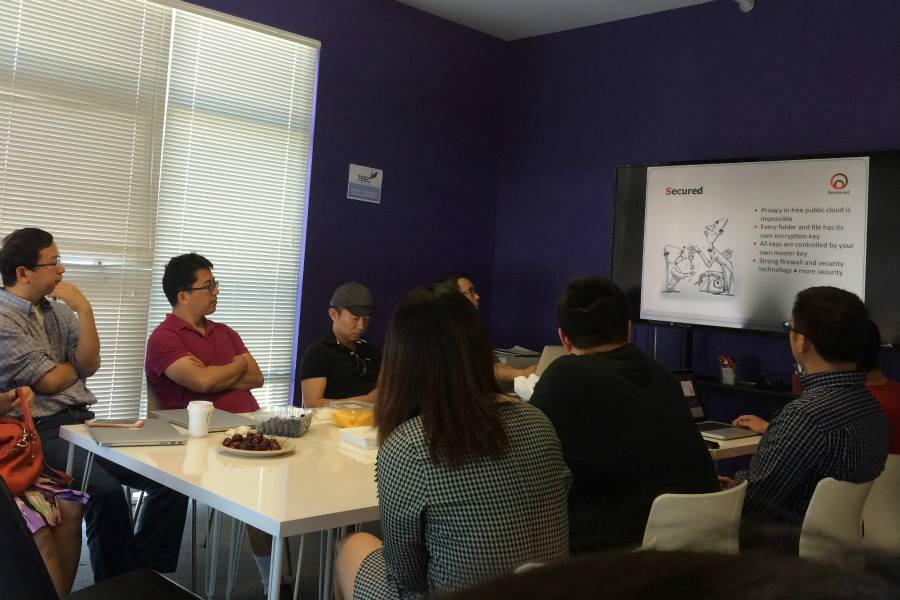 One Chinese entrepreneur pitches his new product to venture capitalists in Palo Alto on July 17, 2015. (People's Daily Online/Han Shasha)