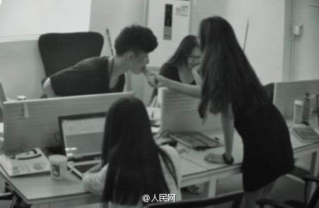 A couple who worked as interns in the same company got fired recently just because the girl fed a corn cob to her boyfriend. The public display of affection was caught by the company’s surveillance camera and the couple was criticized and fired by the company. “Yes, I showed love to my boyfriend. But what’s wrong?” said the girl. They even took a photo in the company before they left.