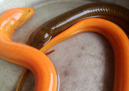 Yang Daiqing, Professor at Yangtze University who is an eel expert in the agriculture department tells cnhubei.com that golden eel does exist in the nature though the number is quite small. The phenomenon is mostly caused by the water it lives in and its own gene. Professor Yang clarifies that golden eel is edible.