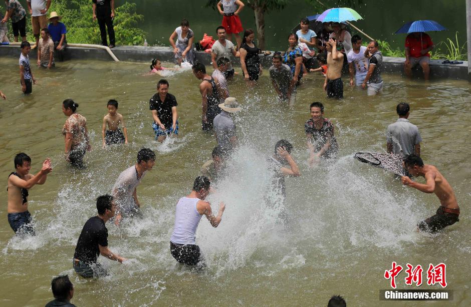 Miao people catch fish in a river to celebrate the traditional Fish-catching Festival on July 21 in Rong'an county of south China's Guangxi. (Photo/CNS)