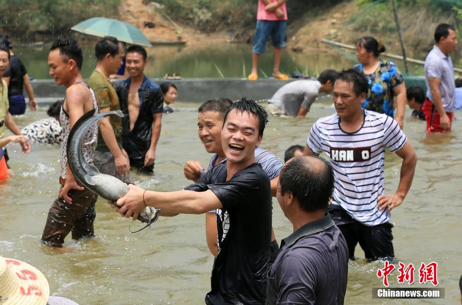 Miao people catch fish in a river to celebrate the traditional Fish-catching Festival on July 21 in Rong'an county of south China's Guangxi. (Photo/CNS)
