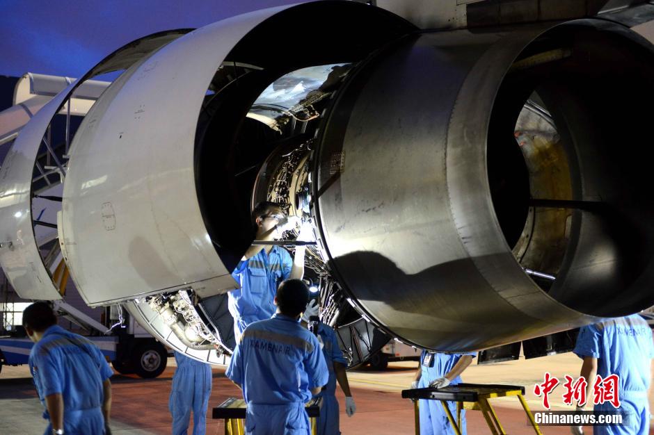 Engineers maintain a plane. (CNS/Wang Dongming)