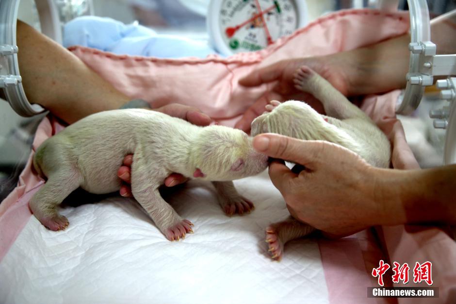 Shasha, a polar bear gave birth to two polar bear cubs – one male and one female - in Quancheng Ocean Polar World, Shandong Province on July 19, 2015. This is the first “pigeon pair” of polar bear successfully bred under the environment of artificial feeding in Shandong. (Photo by China News Agency/ Zhang Jun ) |