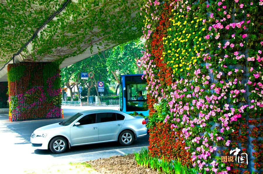 Five bridge piers covered by colorful plants under Yancang bridge in Nanjing, Jiangsu Province is a beautiful scenery of the city. (Photo / CCTV)