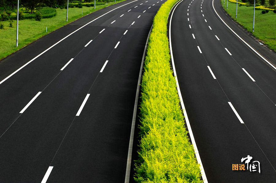 Green belts in the middle of a highway in Liaoning, Shenyang province. The highway greening project sufficiently reflects the characters of the transportation routes and could improve air quality in the urban areas, isolate noise, prevent sandstorm and stabilize the roadbed. (Photo / CCTV)
