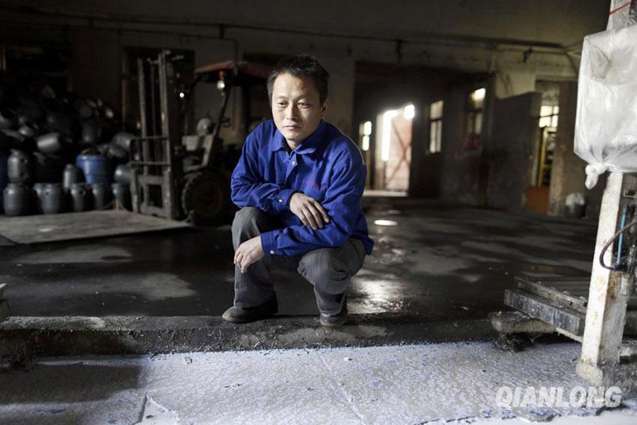 Inventor dream seems impossible to achieve for Song Zhiqiang, 37, who has only junior high-school education. However, as a production director in a building material factory, he has successfully developed a water recycling technology.(Photo/Qian Long) |