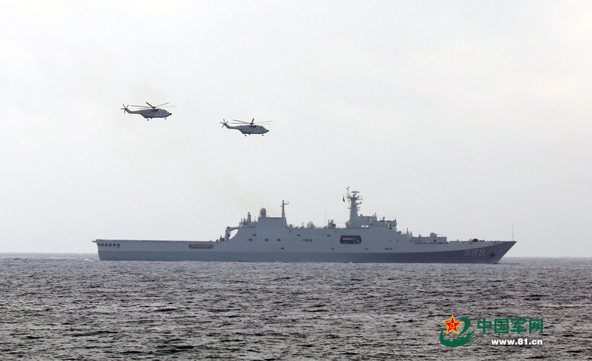 A landing ship division of the South China Sea Fleet, a marine brigade, a navy aviation unit, an amphibious armored force and other units jointly conduct a transportation drill in middle July 2015. (Photo/www.81.cn)