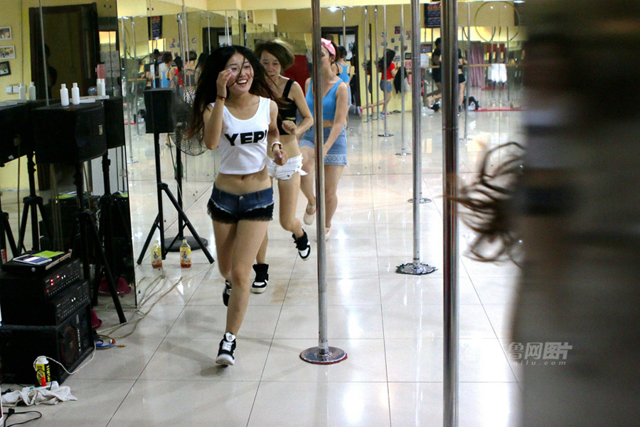 In a pole dancing school in east China’s Shandong province, young girls train hard. They are charming dancers on the stage, but tough girls in the training hall. Pole dance has become popular in China, and more and more young people have begun to learn it. (Photo/iqilu.com) |