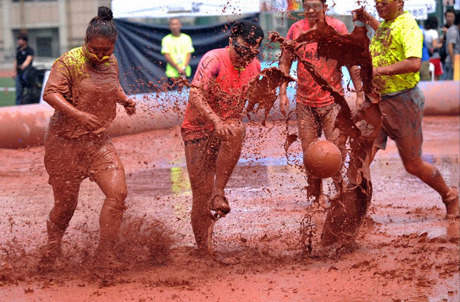 China’s mud football match kicked off in Beijing on July 23, 2015. Mud football fans from all walks of life competed in the mud.