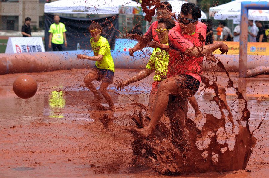 China’s mud football match kicked off in Beijing on July 23, 2015. Mud football fans from all walks of life competed in the mud.