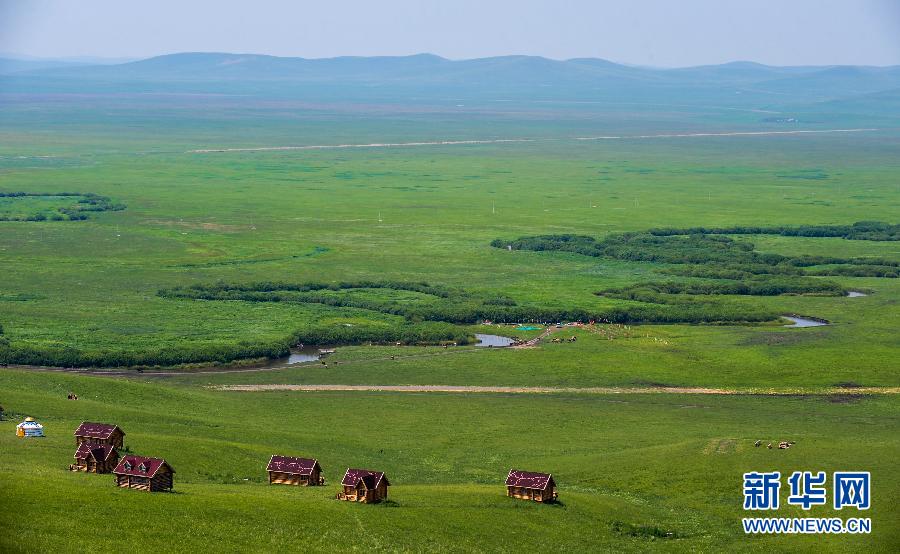 The photo taken on July 25, 2015, shows a gorgeous view of a serpentine river of the Ulla pasture in the northeast of the Xilingele League, north China's Inner Mongolia Autonomous Region. The grassland comes the most beautiful season. (Xinhua/ Lian Zhen) |
