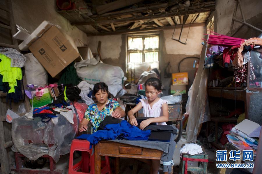 She helps her grandmother do odd job. (Photo/Xinhua)