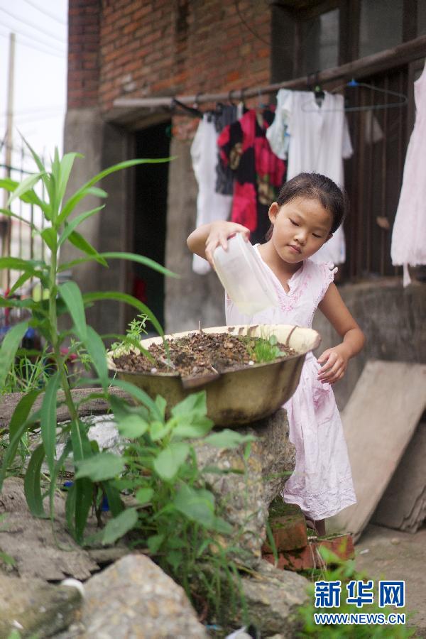 Hu Rumeng, a 9-year-old left-behind who lives in Nanchang helps her grandmother to do cooking, washing, housekeeping in summer holiday. Though she has lots of chores to do, she still puts aside some time for study. She said she can live a better life only if she does well in study. Both her parents are migrant workers and seldom accompany her, so her greatest desire is that her parents would pick her up after school. (Photo/Xinhua) |