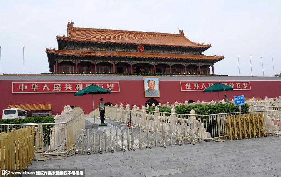 After two weeks of maintenance and refurbishment, the Tiananmen Gate is now in a brand new state for the arrival of the V Day parade on Sept. 3. (Photo/ People’s Daily Online)