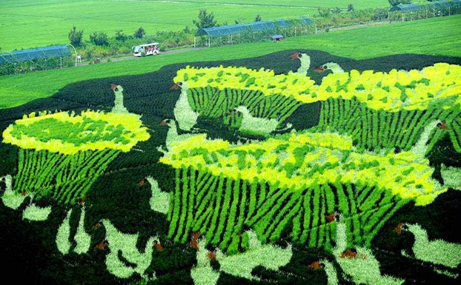 Rice paddy art: It's a great day (Photo by Zhang Wenkui / Xinhua)
