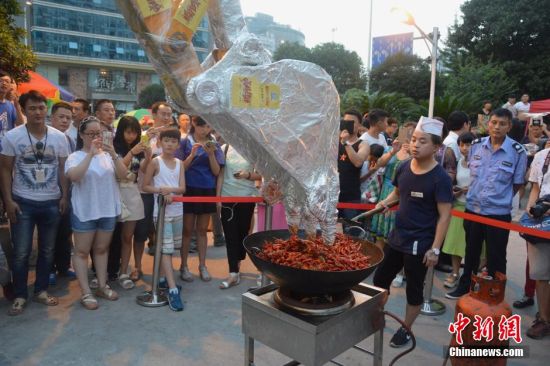 The one-month Crawfish Festival closes in Changsha on July 25, 2015. A 2.5 meter high