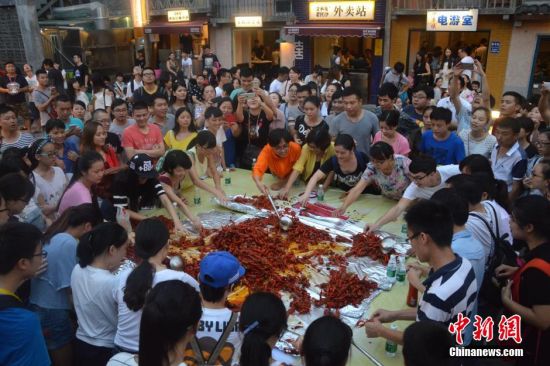The one-month Crawfish Festival closes in Changsha on July 25, 2015. A 2.5 meter high
