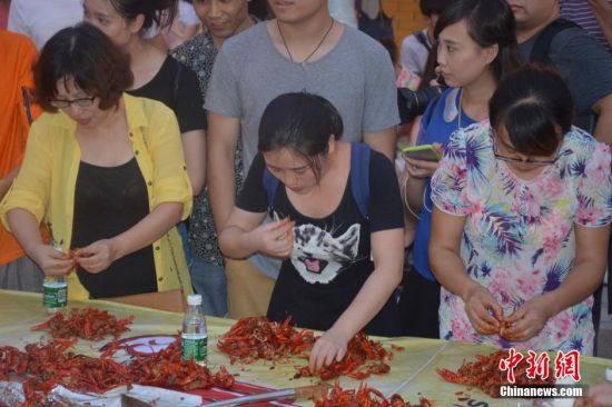 The one-month Crawfish Festival closes in Changsha on July 25, 2015. A 2.5 meter high