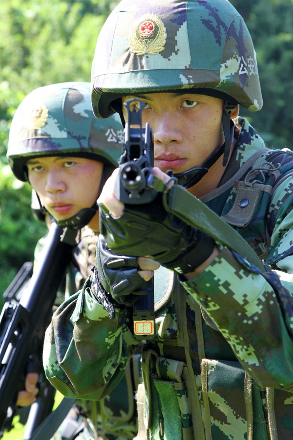 A riot police squad is in training on July 27, 2015. (Photo/ Xinhua)