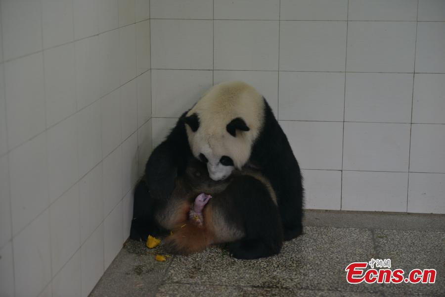 Thai-born panda "Lin Bing" cuddles its newborn cub at the Bifengxia Base of the China Conservation and Research Center for the Giant Panda in Ya’an, Southwest China’s Sichuan province, July 27, 2015. (Photo: China News Service/Zhao Yan)