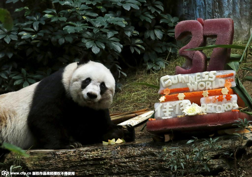 Female panda Jiajia celebrates her 37th birthday.(Photo/CFP)