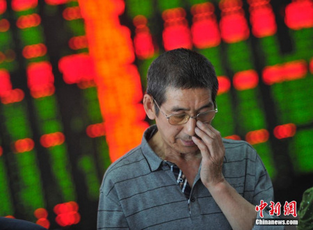 Taiyuan, a man looks sad in a securities business hall. (China News Service/Wei Liang)