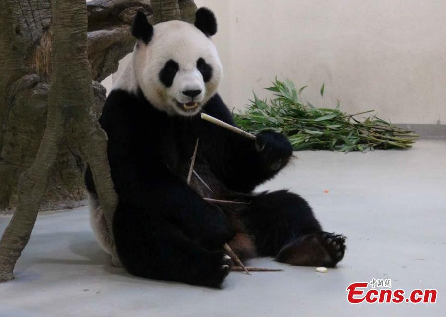 An undated photo shows giant panda Yuan Yuan eating bamboo at the Taipei Zoo. The zoo has confirmed Yuan Yuan is not pregnant despite earlier showing signs she may have been. The panda's keeper also suspects Yuan Yuan may have pretended to be pregnant to receive the better services, including an air-conditioned single room and superior food, that she was treated to during her last pregnancy. Yuan Yuan was artificially inseminated on both March 26 and 27 when she was in heat. Because the gestation period of giant pandas ranges from 120 to 150 days, the unusual symptoms naturally led to expectations that Yuan Yuan might be pregnant. The symptoms now appear to be fading away. (Photo provided to China News Service)