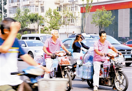 The heat wave hit throughout most part of China on July 25. The highest temperature in Tianjin was above 34 degrees Celsius. There were fewer pedestrians than usual on the streets. Li Xujun, 43, the courier of a water station had a busy and sweaty day. He had to deliver pails of water to at least 50 homes for a day, reported Tonight News Paper.