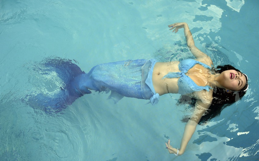 Pan Gaojie, 22, swims with her custom-made tail and poses for photos. (Photo/People’s Daily Online)