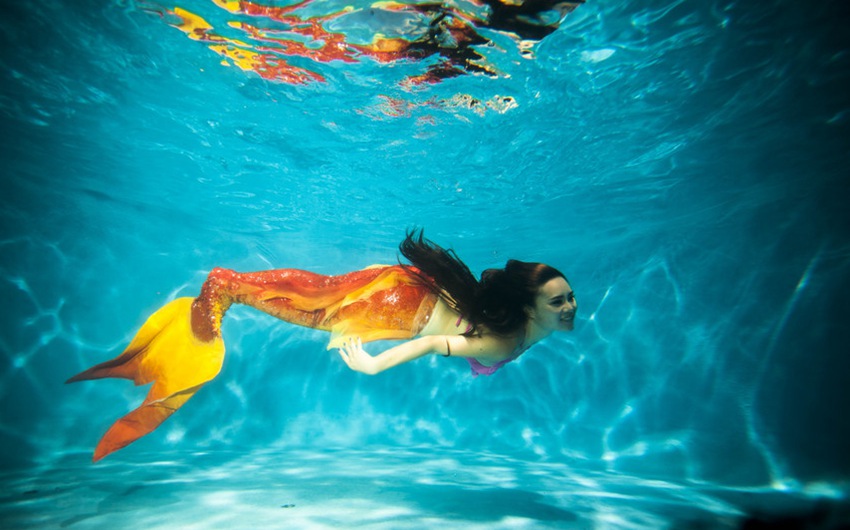 Pan Gaojie, 22, swims with her custom-made tail and poses for photos. (Photo/People’s Daily Online)