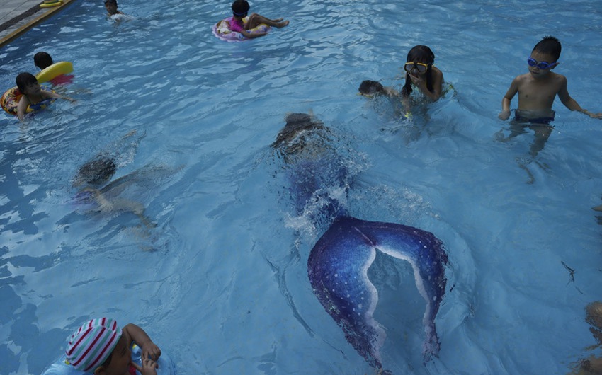 Pan Gaojie, 22, swims with her custom-made tail and poses for photos. (Photo/People’s Daily Online)