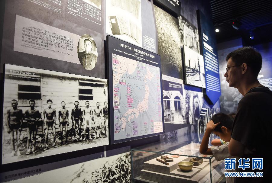 People visit an exhibition held in the Museum of the War of Chinese People's Resistance Against Japanese Aggression on July 26. The exhibition displays how Japanese troops forced more than 10 million Chinese workers to engage in building road, mining, military engineering from 1931 to 1945. (Photo/Xinhua)