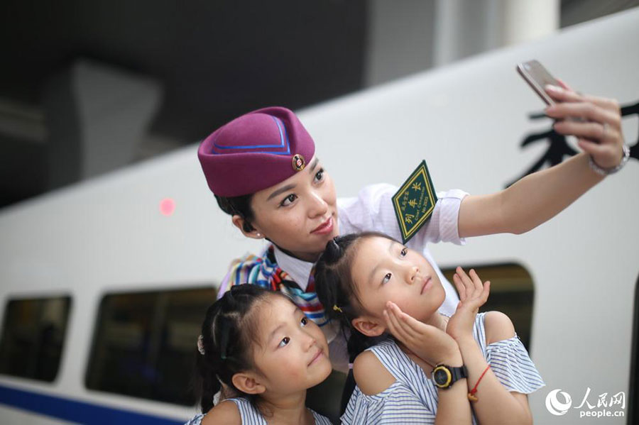 Stewardesses for Hefei-Fuzhou high speed rail debut in Fuzhou