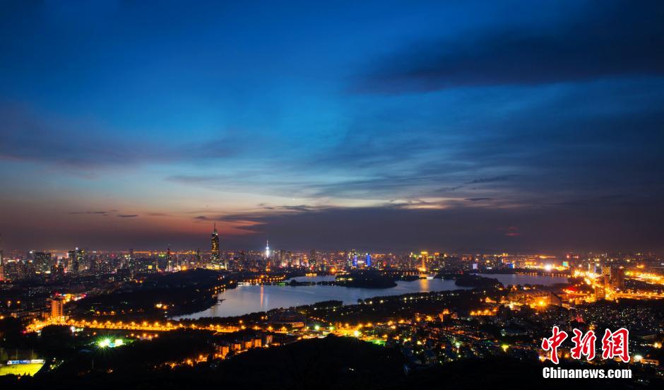 Gorgeous sunset glow appears in the sky over Nanjing city toward the evening of July 27, 2015. The red glow broke through the clouds just like a giant natural neon lamp. (Photo by China News Agency/ Fang Dongxu)