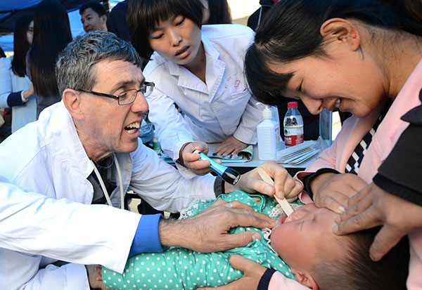 A child is treated by a US doctor in Zhengzhou, Henan province, in April as part of Operation Smile. Doctors working free have provided reconstructive surgery for 1,625 children with cleft lips and palates in China over the past 10 years.ZHANG TAO/CHINA DAILY