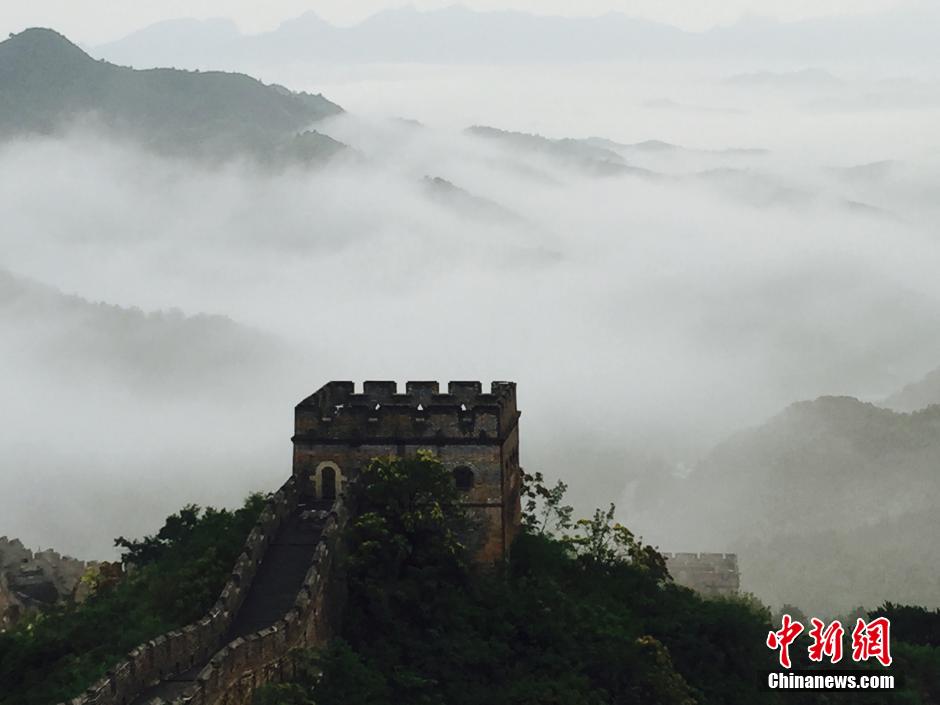 Photo taken on July 28 shows the amazing scenery of Jinshanling Great Wall in clouds after rainstorm. (CNS/Zhou Wanping)