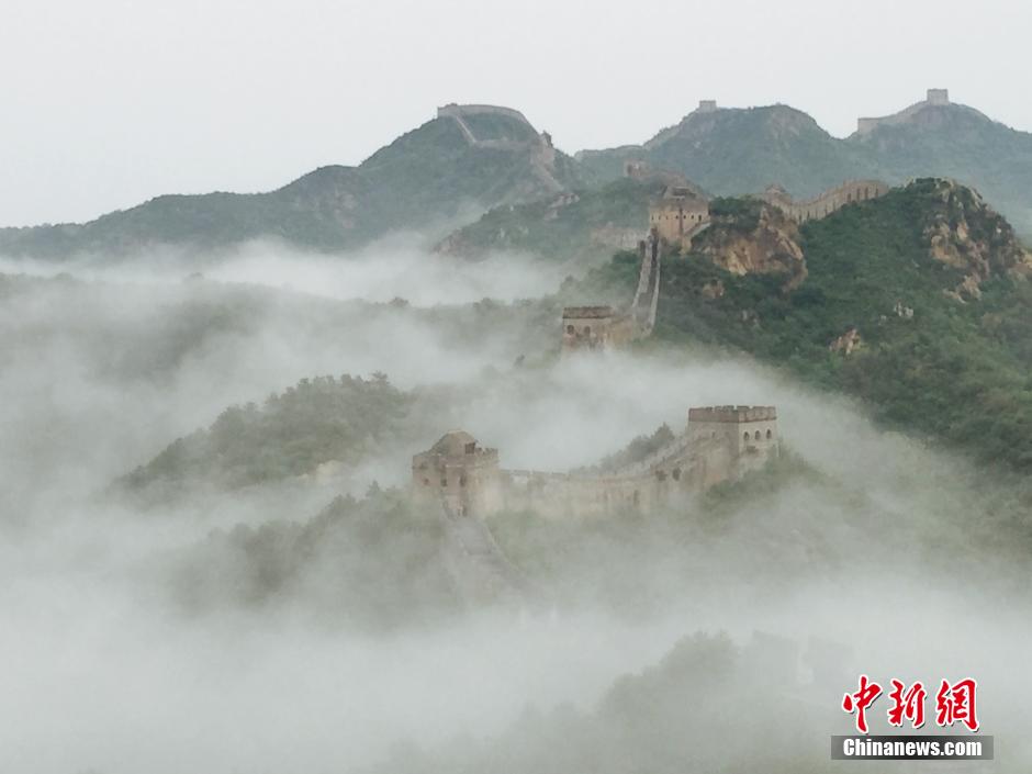 Photo taken on July 28 shows the amazing scenery of Jinshanling Great Wall in clouds after rainstorm. (CNS/Zhou Wanping)